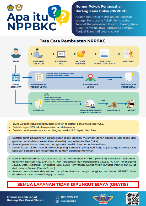 Seluruh layanan pengurusan NPPBKC gratis tanpa dipungut biaya.